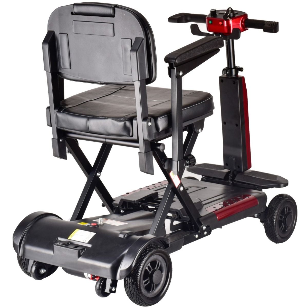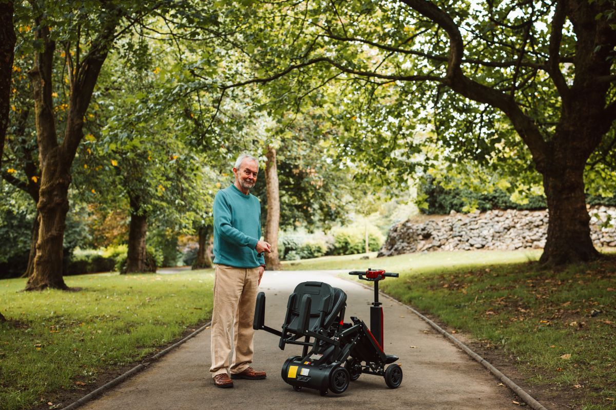 After listening to your requests, we created a lightweight mobility scooter designed to fold effortlessly for easy storage in a car boot. The innovative X5 scooter folds into a compact cube at the push of a button and unfolds just as quickly. We trimmed the weight to 24kg, making it noticeably easier to handle than many alternatives. Its removable battery allows for flexible charging options. Featuring intuitive controls with a single forward and reverse lever that engages brakes when released, the scooter ensures safety and ease of use. It handles slopes up to 12 degrees and includes rear anti-tip wheels. Adjustable handlebars and a 10-15km range per charge complete its expert design.